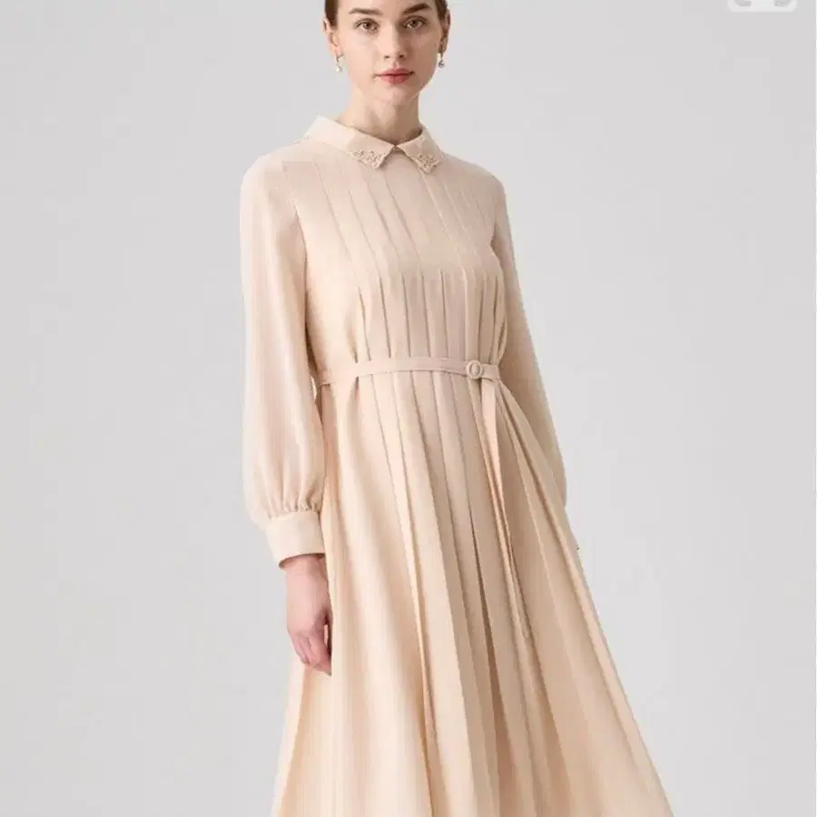 • HARE 플리츠 슬리브 원피스 화이트 베이지 긴팔