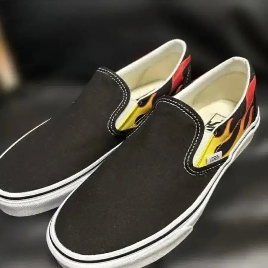 Vans 슬립온 블랙/레드 프레임 패턴