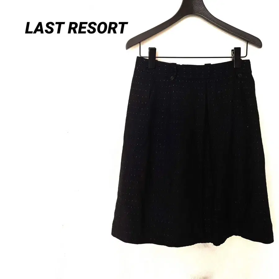 라스트 리조트 ( LAST RESORT )의 무릎 기장 스커트입니다. 두께감 있는 탄탄한 원단으로 추운 계절에도 유용하게 입을 수 있는 아이템입니다. 전체적으로 은은한 도트 무늬 직조가 들어가 고급스럽고 차분한 인상을 줍니다. 안감이 있어 비침이 없고, 오피스부터 포멀한 자리까지 폭넓게 활용 가능합니다. 뒷면 지퍼 사양으로 실루엣이 매우 아름답습니다.