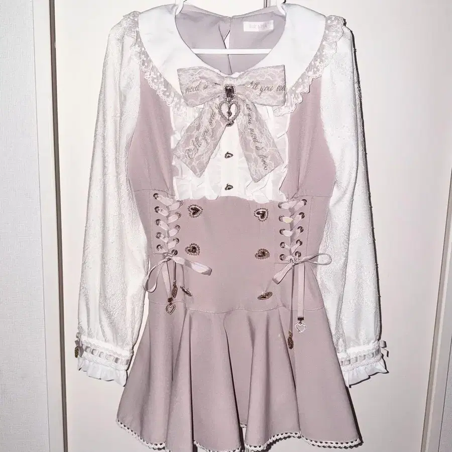 MARS 리본 포함 스커트 셋업 블랙과 핑크