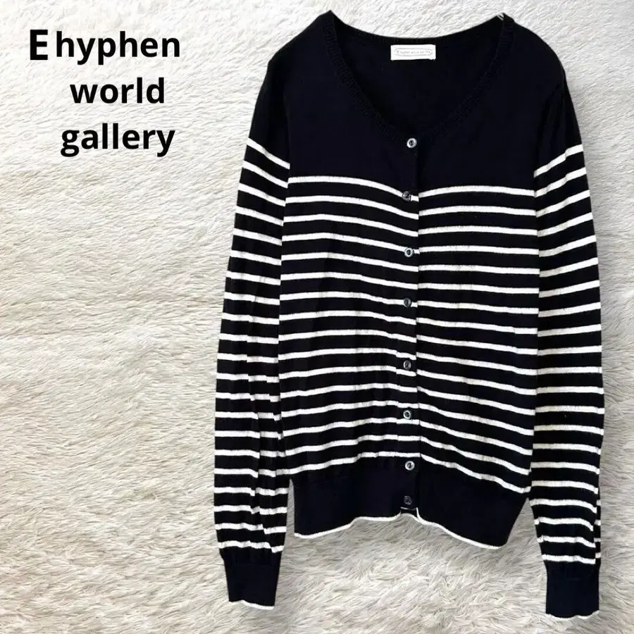 E hyphen world gallery 가디건 긴팔 보더 블랙