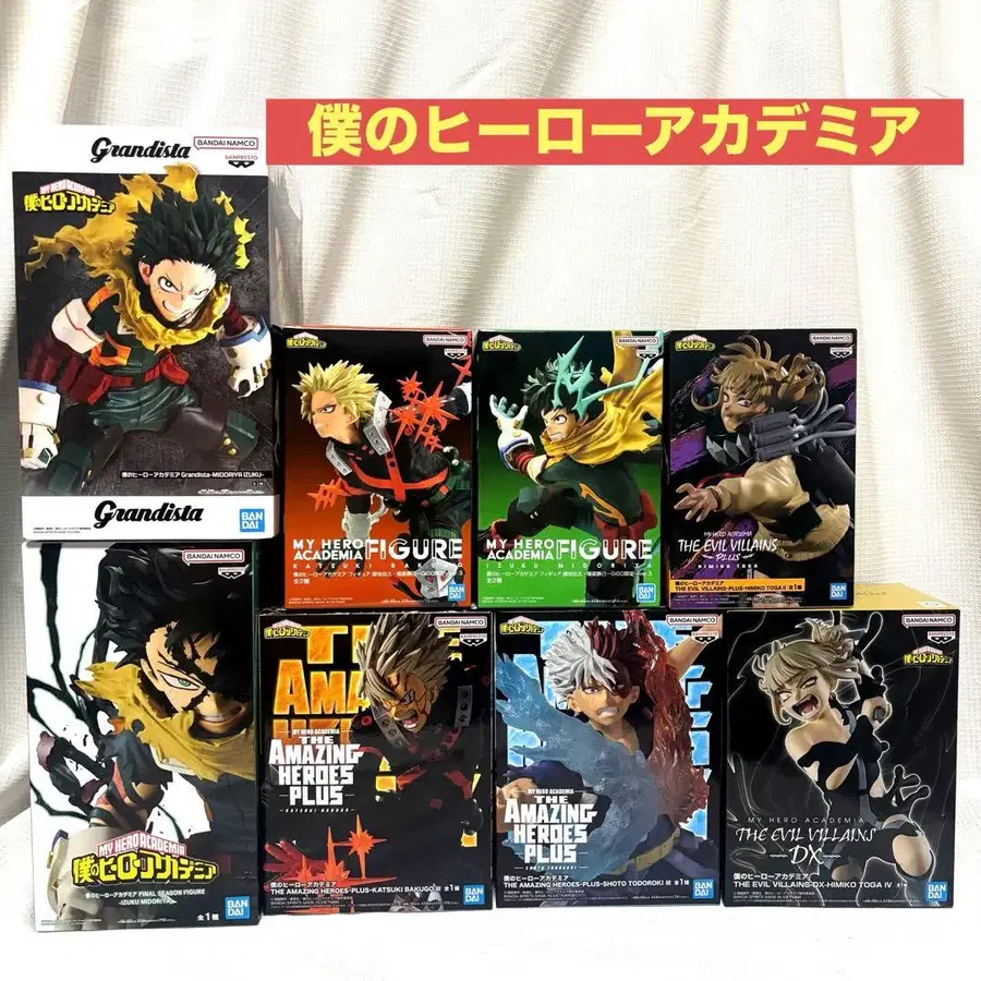 다양한 캐릭터를 갖춘 나의 히어로 아카데미아 피규어 세트.