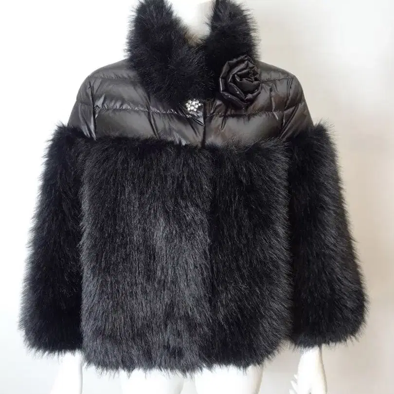 세련된 겨울 차림을 위한 에코 퍼 절개 다운 코트입니다.