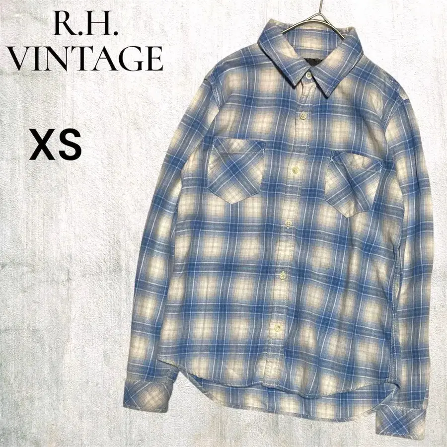 론 헤르만 빈티지 긴팔 셔츠 XS 화이트 블루 체크 무늬