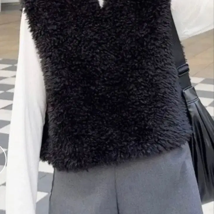 플리스풍의 부드러운 브라운 베스트, V넥 디자인으로 캐주얼하게 연출할 수 있습니다.