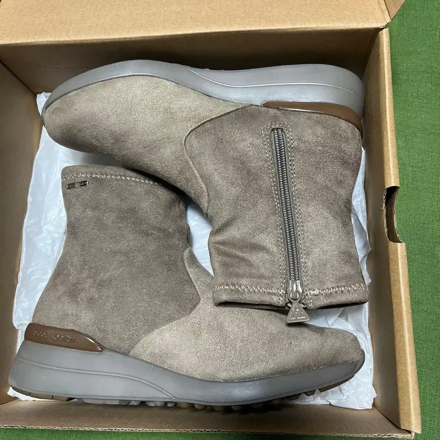 5년 전에 구매했으며, 사용은 1~2회입니다. 상자에 넣어 보관했습니다. 깨끗한 상태입니다. [평소 신발 사이즈는 23.5이지만 이 브랜드는 24.0이 딱 맞습니다.] 24cm이신 분에게는 작을 것 같습니다. 발수 가공이 되어 있으며, 가죽이 부드럽고 따뜻합니다. 약간 광택이 있는 차분한 그레이지 색상입니다.