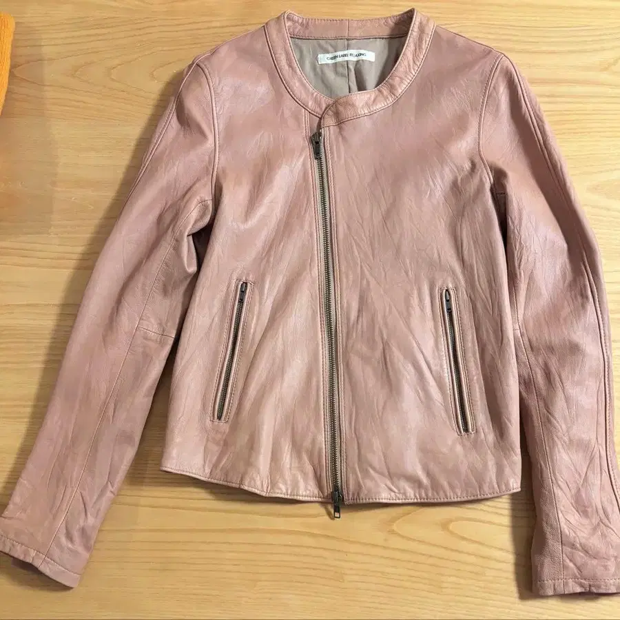 • sophila 노카라 가죽 자켓 핑크 베이지 램 가죽