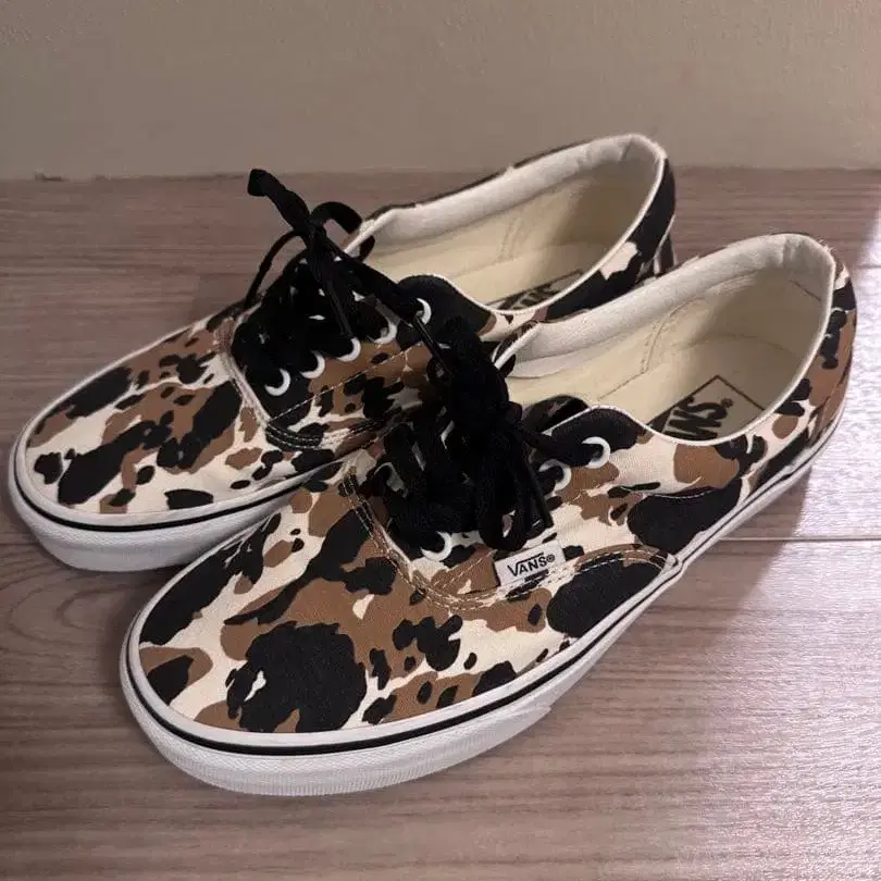 사이즈가 맞지 않아 판매합니다. 상품명: Vans Era Cow Multi Color 카모플라주 (블랙/베이지) 사이즈: 26.5cm (US 8.5) 상태: 실내에서만 시착용으로 착용한 관계로, 새상품급입니다. ※ 상자 없음. 스니커즈 본체만