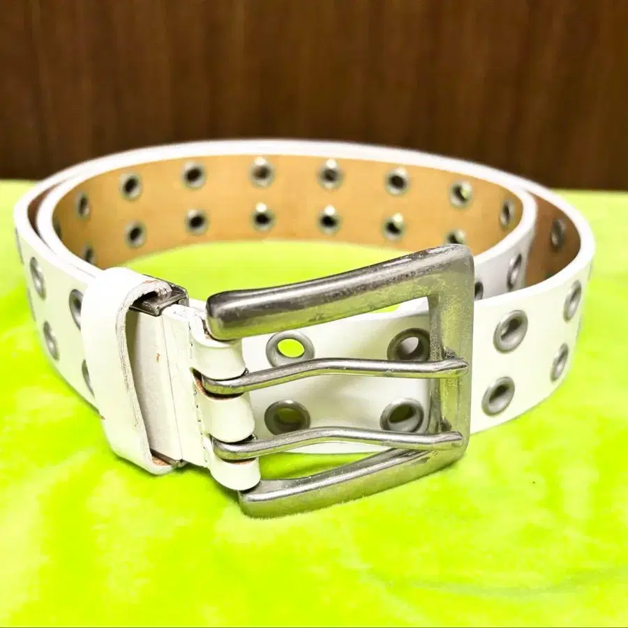 화이트 가죽 아이렛 벨트, 더블 핀 버클 디자인. - 색상: 화이트 - 소재: 가죽 - 디자인: 아이렛 포함 - 버클 타입: 더블 핀 버클 방문해 주셔서 감사합니다.