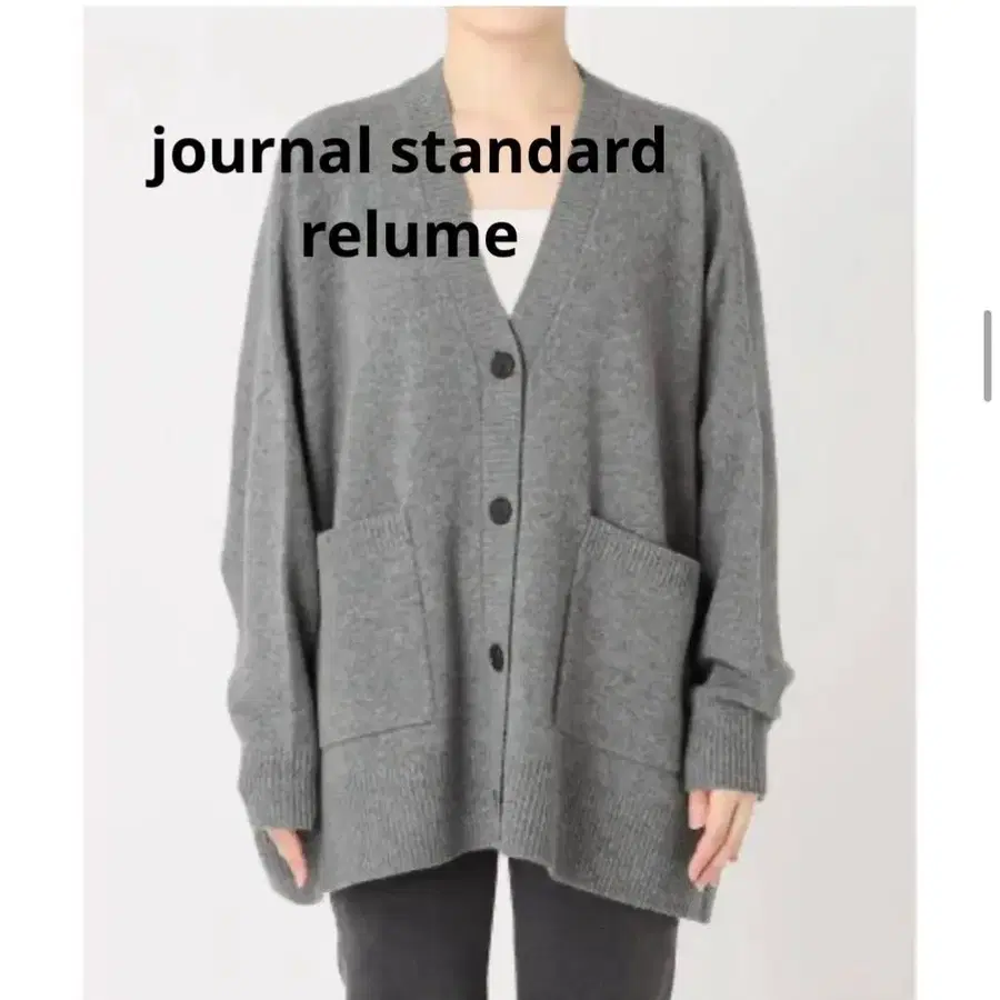 그레이 니트 버튼 가디건, 앞면에 2개의 포켓 부착, 긴팔 디자인.