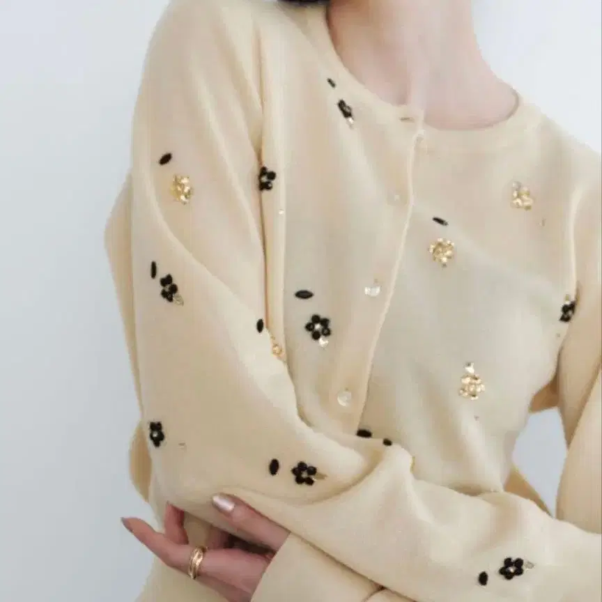 JEANASIS 5G 플라워 라메 페더 V넥 가디건
