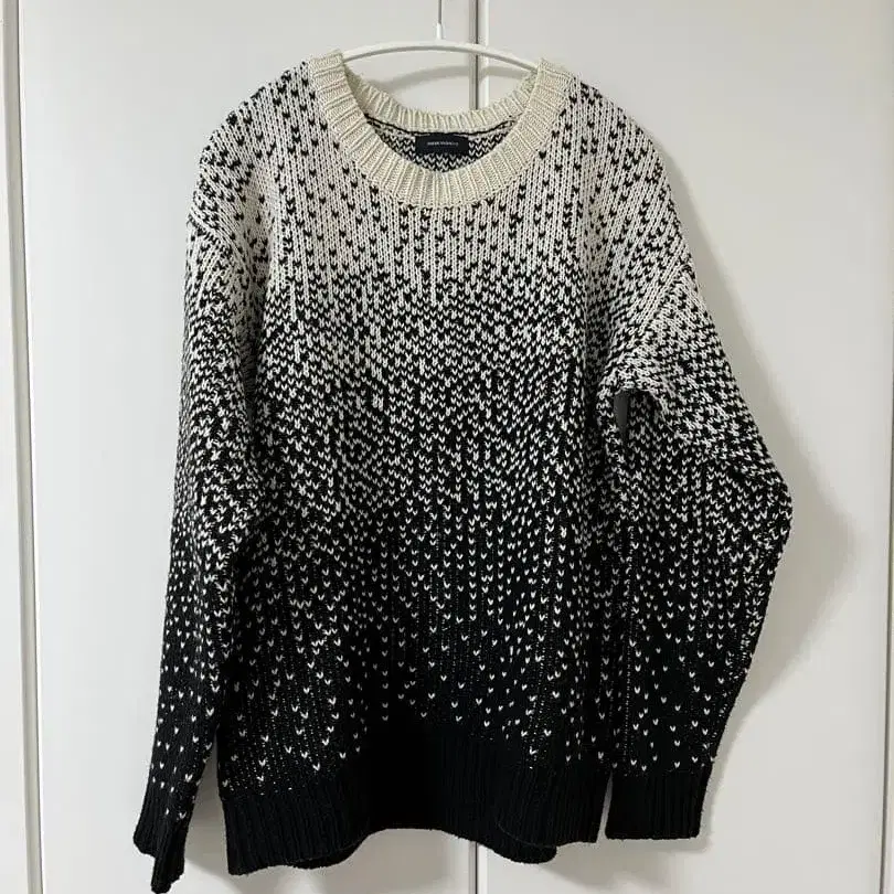 그라데이션 디자인의 크루넥 니트 스웨터.