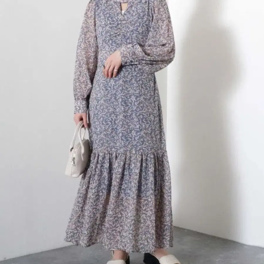 롱 기장의 꽃무늬 원피스입니다.