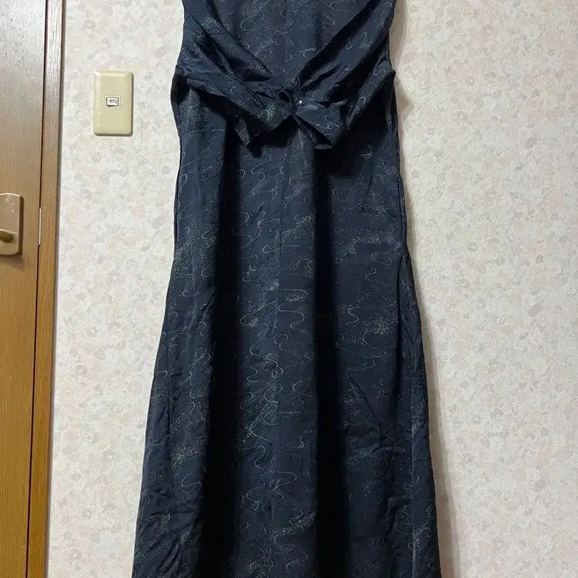 블랙 무늬 긴팔 롱 원피스, 백 지퍼 포함. - 색상: 블랙 - 디자인: 무늬 포함 - 소매 길이: 긴팔 - 백 스타일: 지퍼 포함 방문해 주셔서 감사합니다. 사이즈 - M