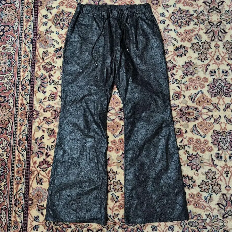 2024 SS A PUZZLING HOME 코팅 부츠컷 팬츠 갈라진 패턴의 전체 코팅 원단의 이지 플레어 팬츠입니다. 눈에 띄는 흠집이나 얼룩 없이 아직 충분히 사용 가능합니다. 2(M) 허리 74~102 밑위 31 인심 73 허벅지 33.5 즉시 구매 ok입니다. 1~2일 내로 발송합니다.