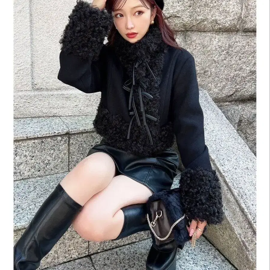 1회 시착만 한 택 포함 상품입니다(*´˘`*) ♡ 올겨울 꼭 입고 싶은 복슬복슬한 아우터 ♪ ▽ 디자인 ▽ 인조 퍼가 여성스러운 부드러움과 귀여움을 더해줍니다. 퍼 사용은 부분적으로 하여 깔끔한 인상을 주며, 부해 보이지 않고 날씬한 실루엣으로 완성됩니다. 프론트에는 얇은 리본을 풍성하게 달아 악센트를 주었습니다. 크롭 기장이라 입기만 해도 스타일업이 가능합니다. 스탠드 넥이지만 가장 위 버튼을 풀고 옷깃을 접어 연출할 수도 있습니다. ▽ 스타일링 ▽ 가지고 계신 원피스나 상의 x 하의 코디에 매치하기 쉬운 컴팩트한 기장감으로 돌려입기 좋습니다 ◎ 심플한 아이템과 매치해도 멋스러운 코디의 주인공급 아우터 ♪