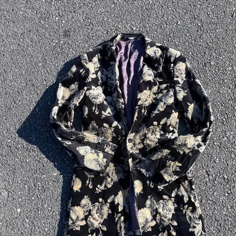 꽃무늬 벨로아 원단의 테일러드 자켓입니다. 가슴 너비가 좁지만 그것이 매력이라고 생각합니다.