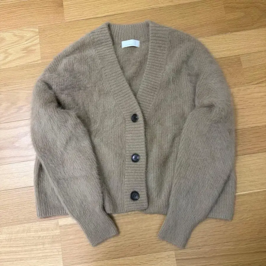 새상품급 로페 라쿤 V넥 가디건 베이지 쉘 버튼