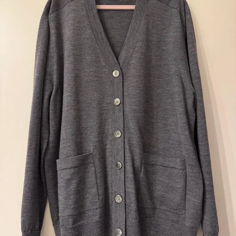 울 100% 그레이 V넥 가디건, 앞면에 포켓 부착. - 색상: 그레이 - 소재: 울 100% - 디자인: V넥, 버튼 부착 - 포켓: 앞면에 포켓 있음 방문해 주셔서 감사합니다.