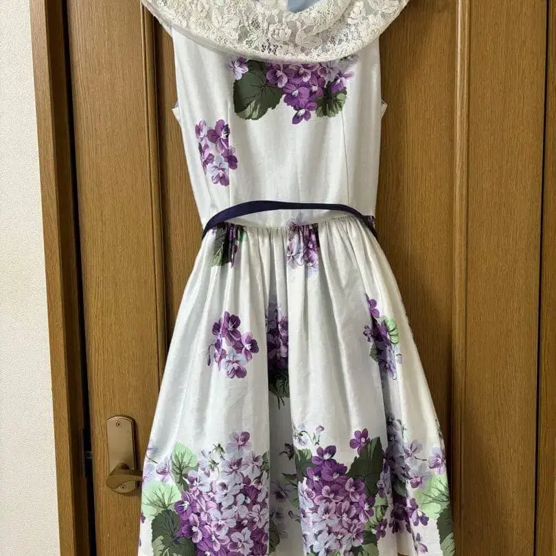 로이스크레용의 원피스입니다. 보라색 또는 수국 패턴입니다. 눈에 띄는 얼룩은 보이지 않지만 개인 보관이었던 점 양해 부탁드립니다.