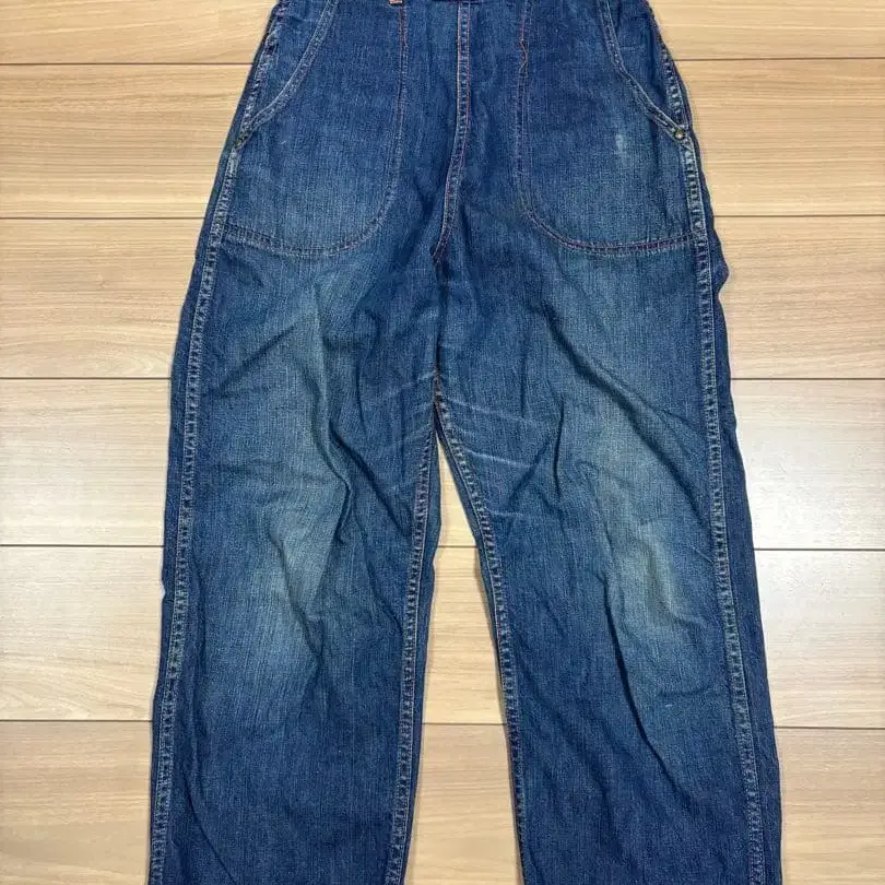 1월 1일부터 4일까지는 발송이 불가능합니다!! 다른 곳에서도 판매 중이므로 갑작스러운 판매 취소 가능성이 있습니다. 타이밍에 따라 구매하셨더라도 취소될 가능성이 없지 않다는 점을 양해 부탁드립니다. 빈티지 노브랜드 런치 팬츠입니다. 원단의 실 불균일함과 버튼으로 보아 50s~60s 정도로 생각됩니다. 포켓은 리벳으로 고정되어 있습니다. 빈티지 특유의 이상한 얼룩이나 페인트는 없지만, 사진처럼 가랑이에 찢어진 부분이 있어 수선집에서 보강하신 후 착용하시면 좋을 것 같습니다. 그만큼 저렴하게 판매합니다. 작은 사이즈이므로 실측 사이즈를 확인해 주세요. 일본 남성 평균 체형인 제가 입기에는 작습니다. 작은 체구이거나 여성분들께 적합할 것 같습니다. 마지막 사진은 판매 중인 시어스 빈티지 플란넬 셔츠와의 조합입니다. 참고용이며 플란넬 셔츠는 본 판매에 포함되지 않습니다. 어디까지나 중고품이므로, 납득하신 후 구매 부탁드립니다. 검색용 리바이스 페인터 팬츠 빅 E 빨간색 귀 페니스 스토어 계열 브랜드 보스 오브 더 로드