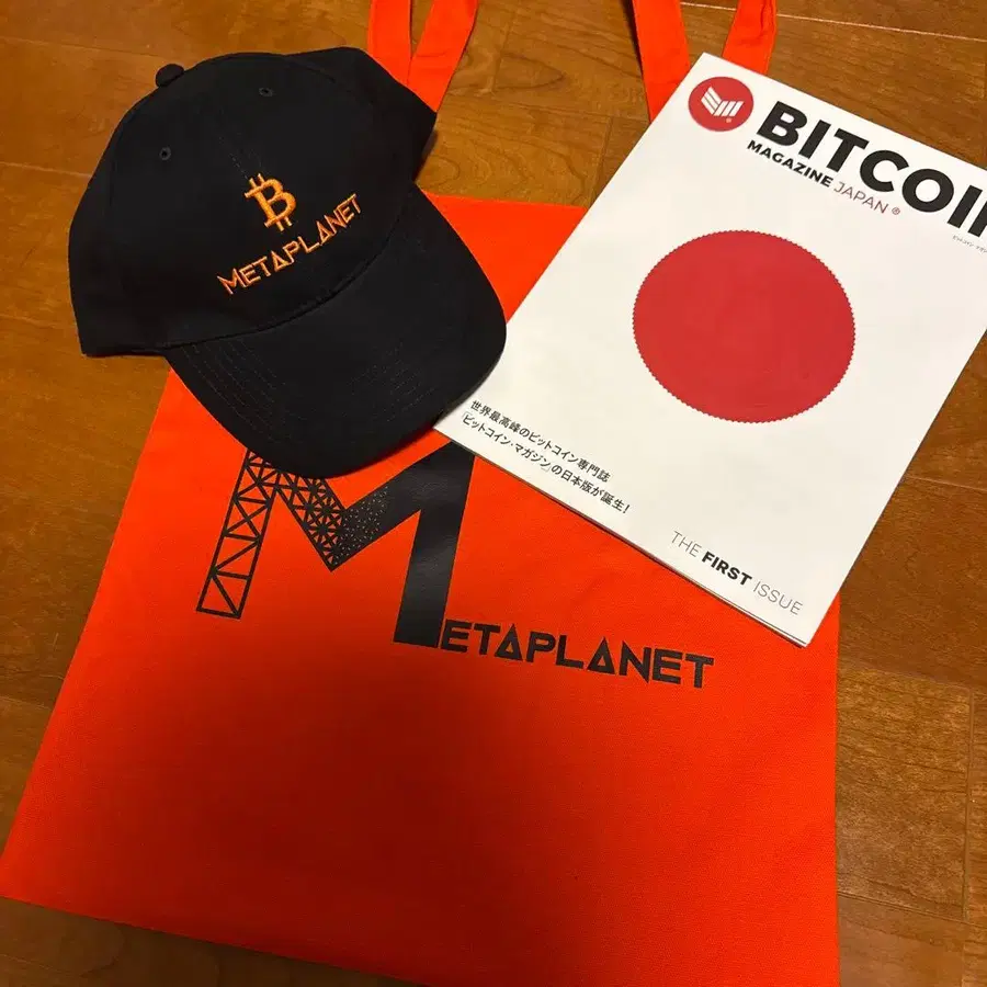 비트코인 창간호와 메타플래닛의 토트백, 캡 세트입니다. 미사용 새상품 메타플래닛 - 상품명: 비트코인 매거진 일본판 창간호 - 백 디자인: 오렌지 컬러 토트백, 메타플래닛 로고 포함 캡 - 발행호: 창간호 즉시 구매 OK ❕