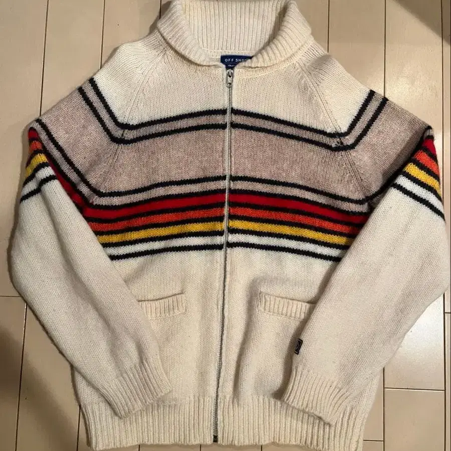 OFFSHORE 오프쇼어 풀 집업 니트 스웨터 보더 L 아메카지