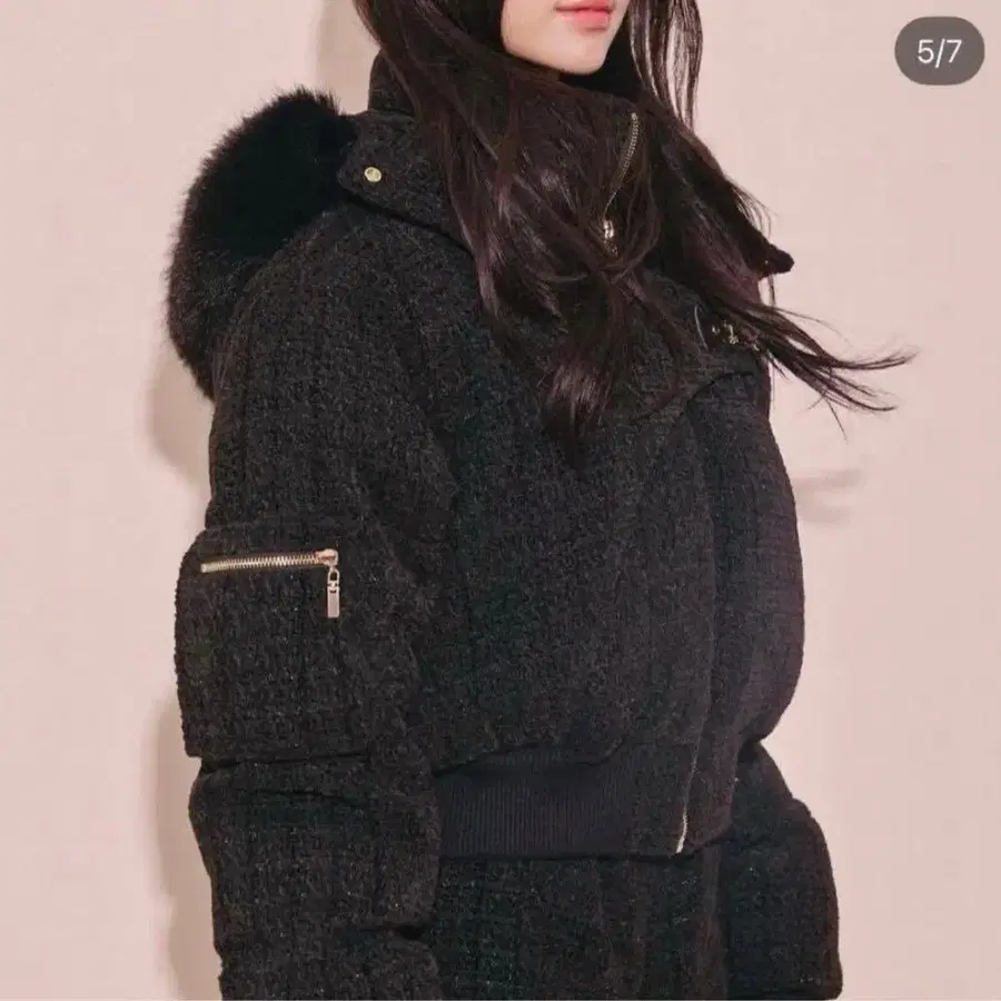 랜디 비대칭 버클 트위드 패딩 자켓 블랙