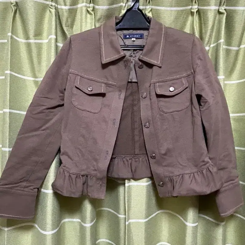 카키 테일러드 자켓 프릴 밑단 40