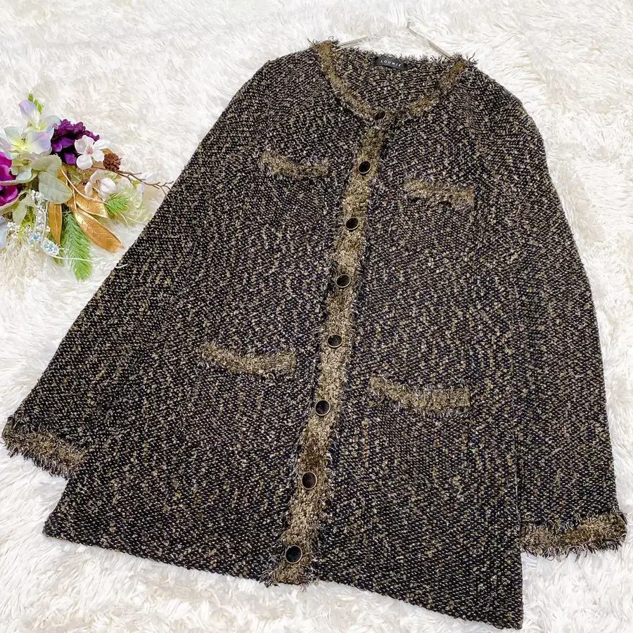블랙과 베이지 트위드 소재의 노카라 튜닉