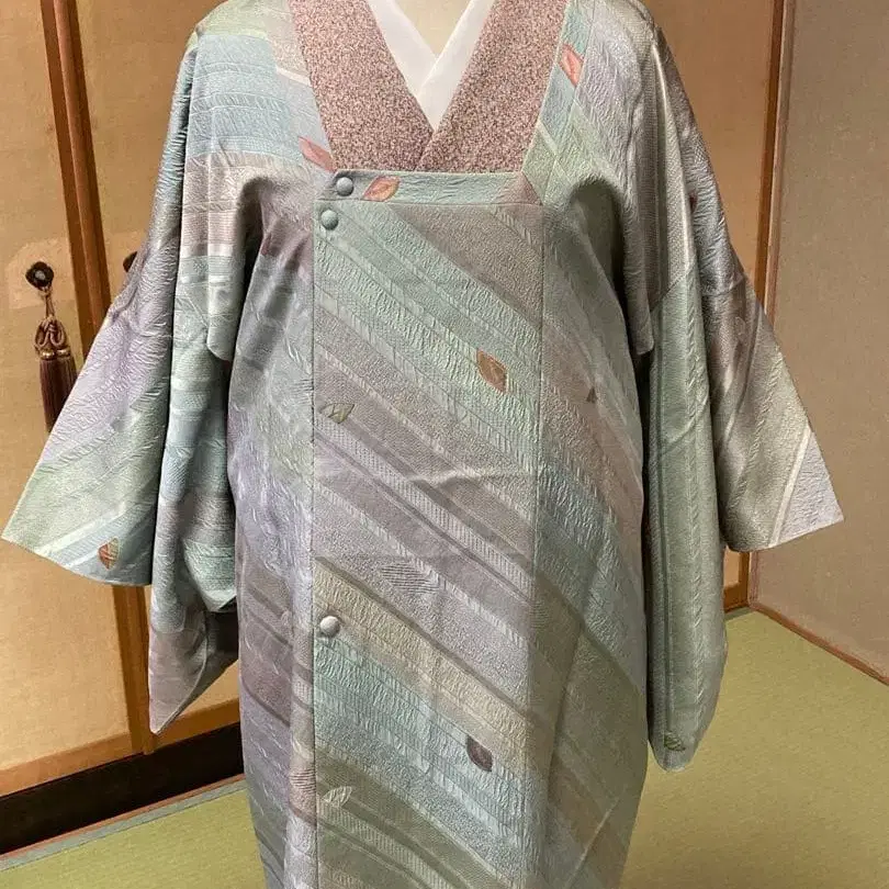 다색의 부클레 직조 도행 코트입니다. - 색상: 다색 (그린, 옅은 브라운, 베이지) - 소재: 실크 기장 - 약 84cm (어깨부터) 화장 - 약 63cm 착용하신 기모노는 포함되지 않습니다. 도행만 판매합니다. 기모노는 별도로 판매 중입니다. 할인 협의 OK, 댓글으로 부탁드립니다. 방문해 주셔서 감사합니다.