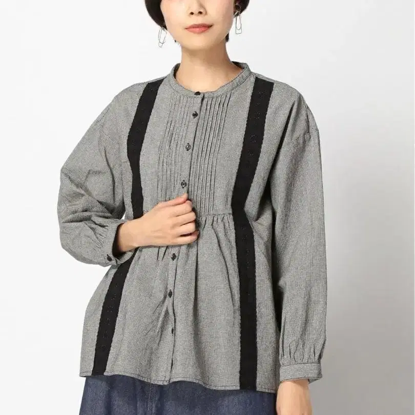 배색 자수 x 레이스를 악센트로 페미닌하게 완성한 프론트 오픈 블라우스.