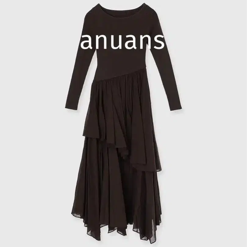 [가격표 포함] anuans 보트넥 불규칙 헴 도킹 니트 원피스