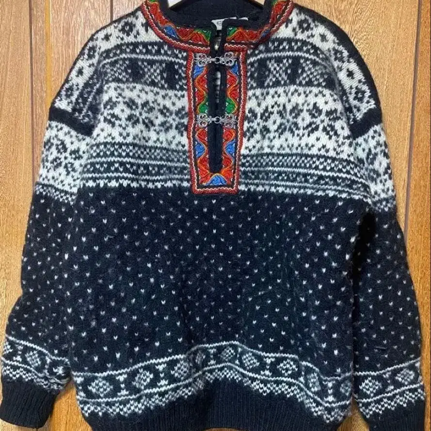 빈티지 모드 유럽 레트로 아트 패턴 니트 스웨터