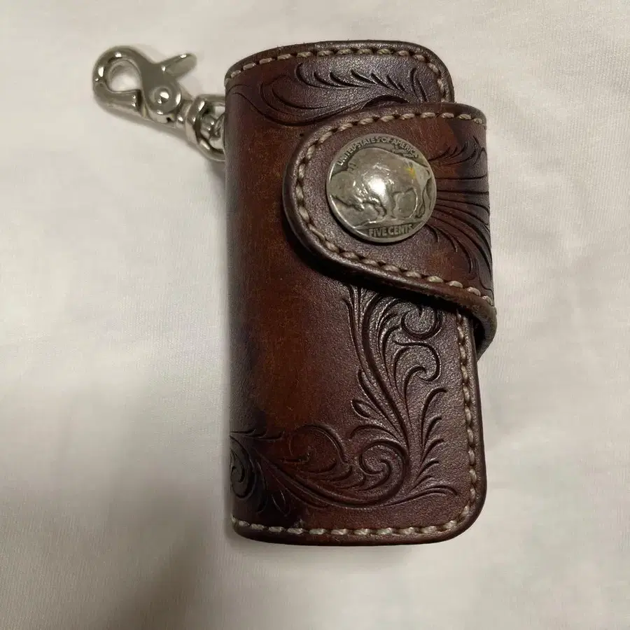 엠보싱 가공된 브라운 가죽 키케이스, 컴팩트하여 휴대하기 편리합니다. - 소재: 가죽 - 색상: 브라운 - 디자인: 엠보싱 가공 - 금장 장식: 스냅 버튼과 클립 - 사이즈: 컴팩트 방문해 주셔서 감사합니다.