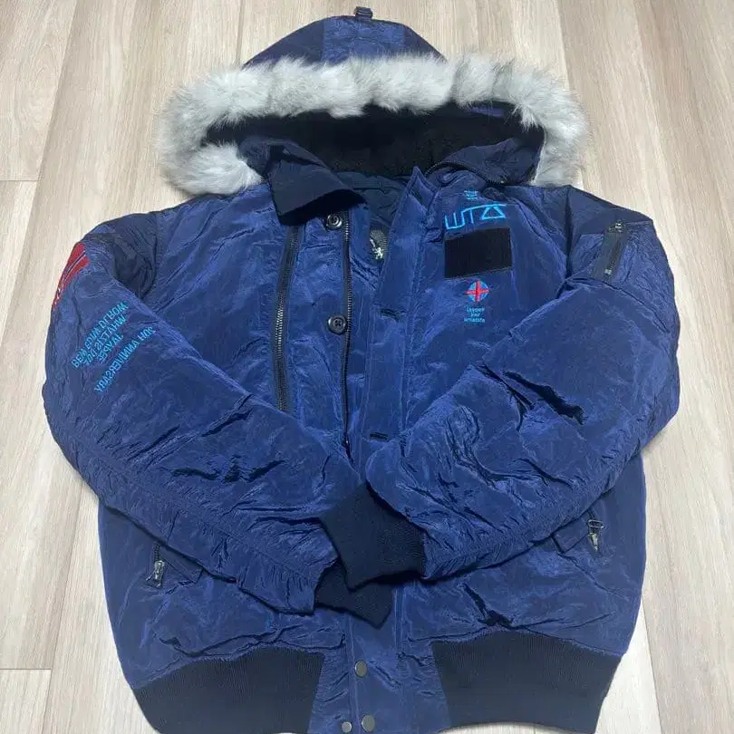 WHATZIS 별주 METALIC NYLON HOODED BOMBER JACKET 입을 기회가 줄어들어 판매합니다. 질문 등이 있으시면 댓글 주세요. 기본적으로 상태는 양호합니다. - 색상: 네이비 - 디자인: 후드 부착 - 사이즈: L - 특징: 퍼 부착 후드, 단추식 - 정가: 77,000엔 (세금 포함)