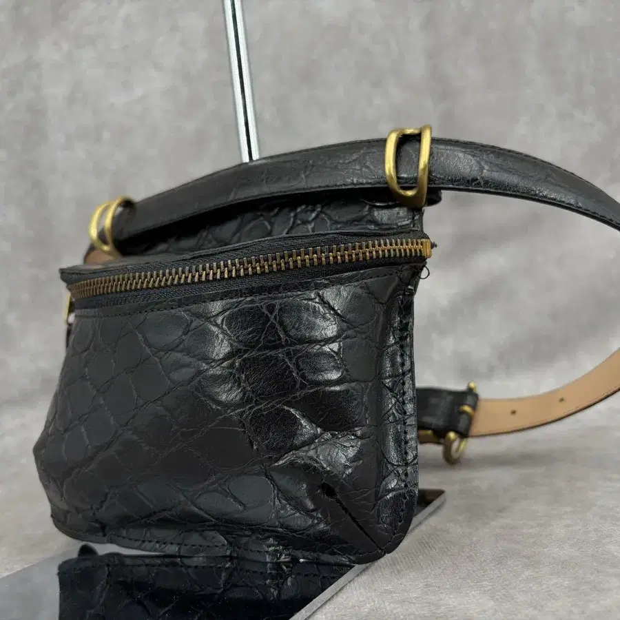 nino cerruti 니노 셀루티 메디슨 백 벨트 파우치 웨스트 파우치 악어 엠보싱 천연 가죽 가죽 블랙 검정