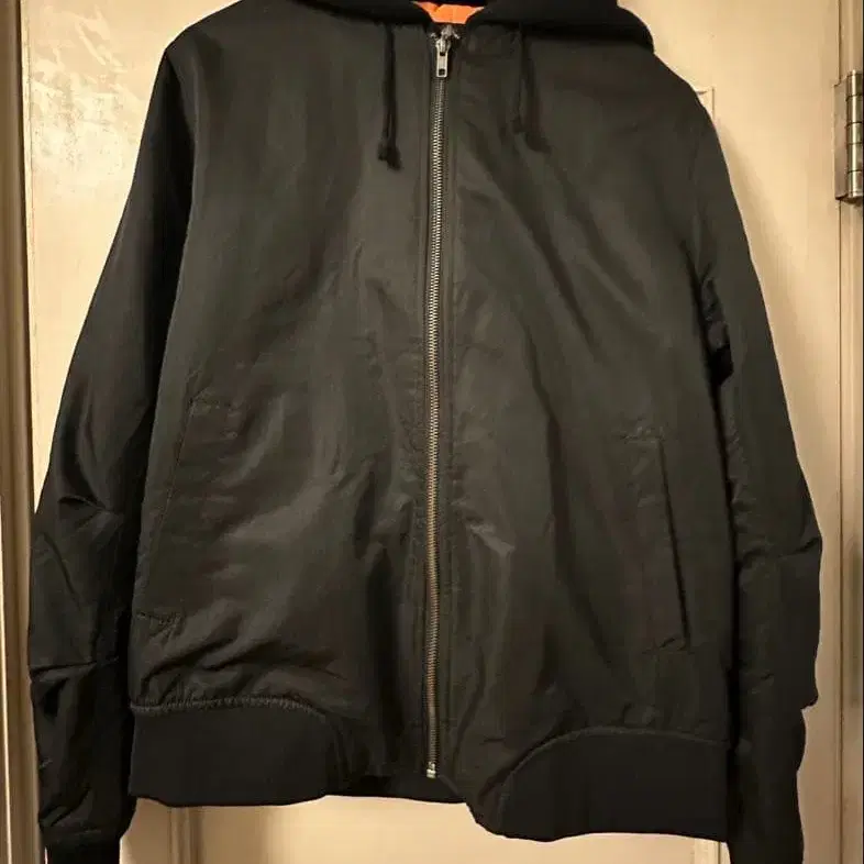 [ 비고 ] 후드 부착된 MA-1입니다. 외부 색상은 블랙, 안쪽 색상은 오렌지입니다. 후드에 보풀이 약간 있습니다.