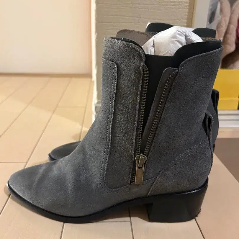 스웨이드 소재의 그레이 숏부츠, 지퍼 디자인으로 신기 편합니다. - 색상: 그레이 - 소재: 스웨이드 - 디자인: 지퍼 포함 - 스타일: 숏부츠 방문해 주셔서 감사합니다.