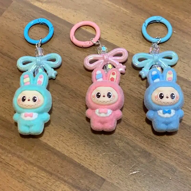 토끼 귀 러브브 키링 3개 세트. - 색상: 파랑, 핑크, 스카이블루 - 디자인: 토끼 캐릭터 - 소재: 소프트한 피규어 소재 - 부속품: 리본 포함 키링 반지 피규어 약 4.5cm 미사용 새상품입니다. 촬영을 위해서만 개봉했습니다. 방문해 주셔서 감사합니다.