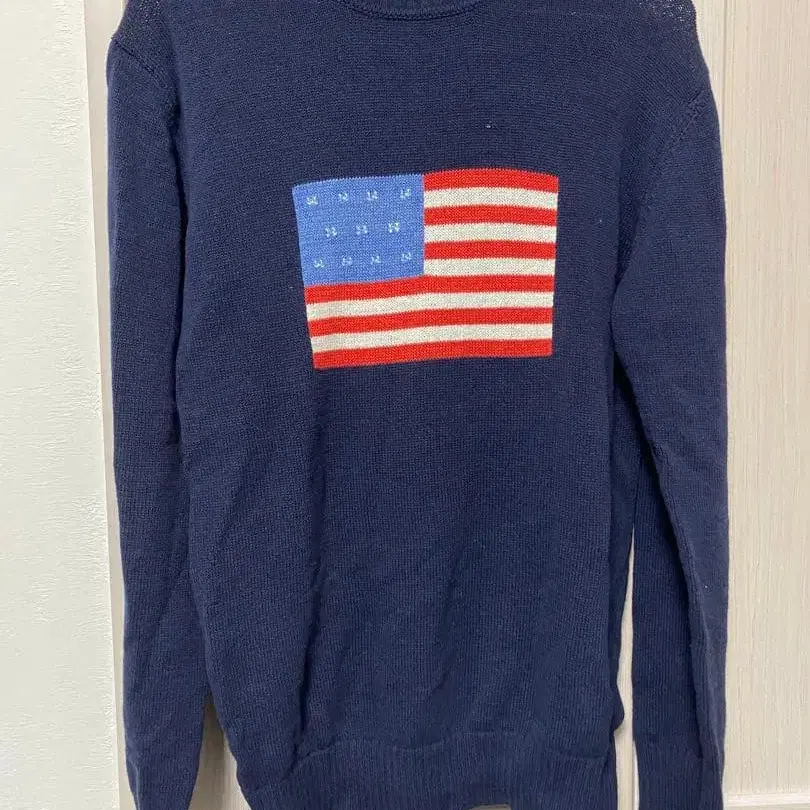 미국 국기 프린트가 특징인 네이비 니트 스웨터. - 색상: 네이비 - 디자인: 미국 국기 프린트 - 브랜드: 어니 파머 - 사이즈: L - 스타일: 클래식 스타일 방문해 주셔서 감사합니다.