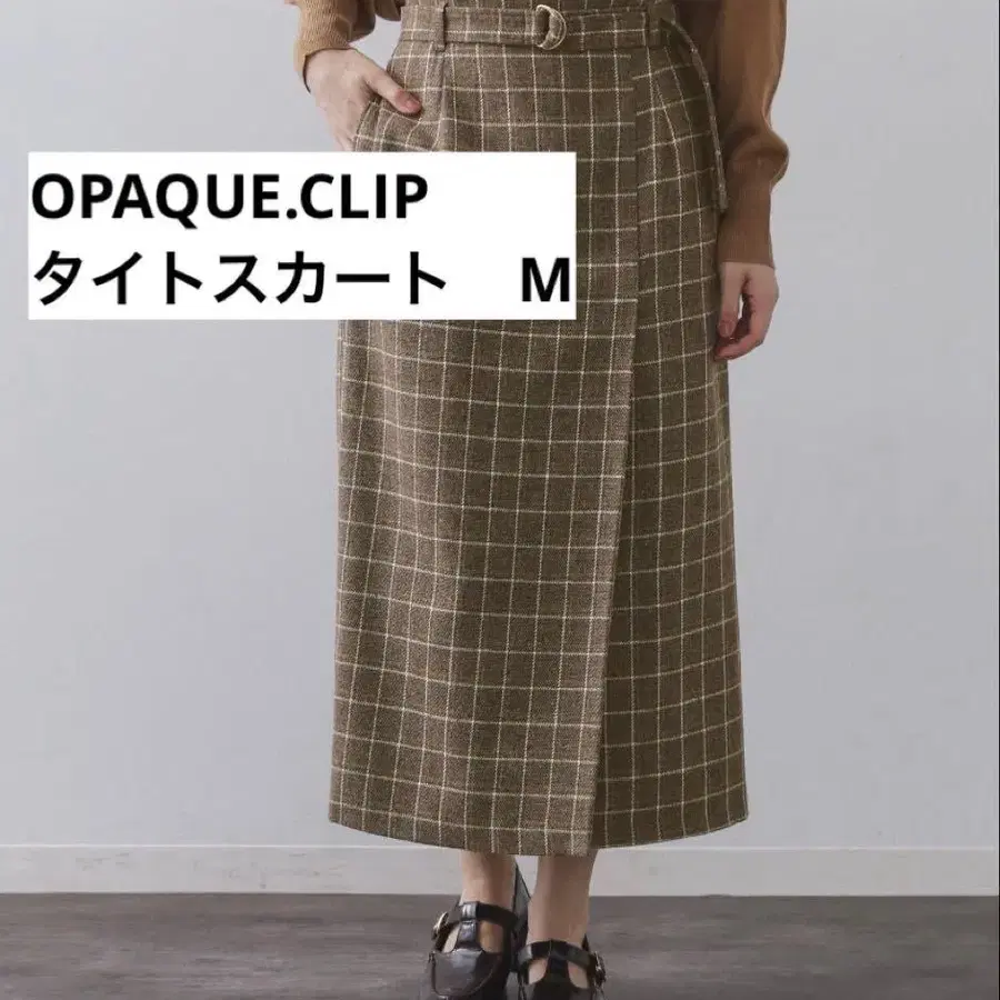 체크 무늬가 눈길을 끄는 랩 스타일 디자인의 내로우 스커트