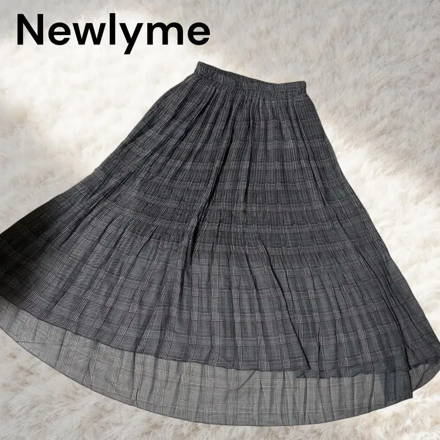 [택 포함] Newlyme 체크 무늬 롱 스커트 M 허리밴딩