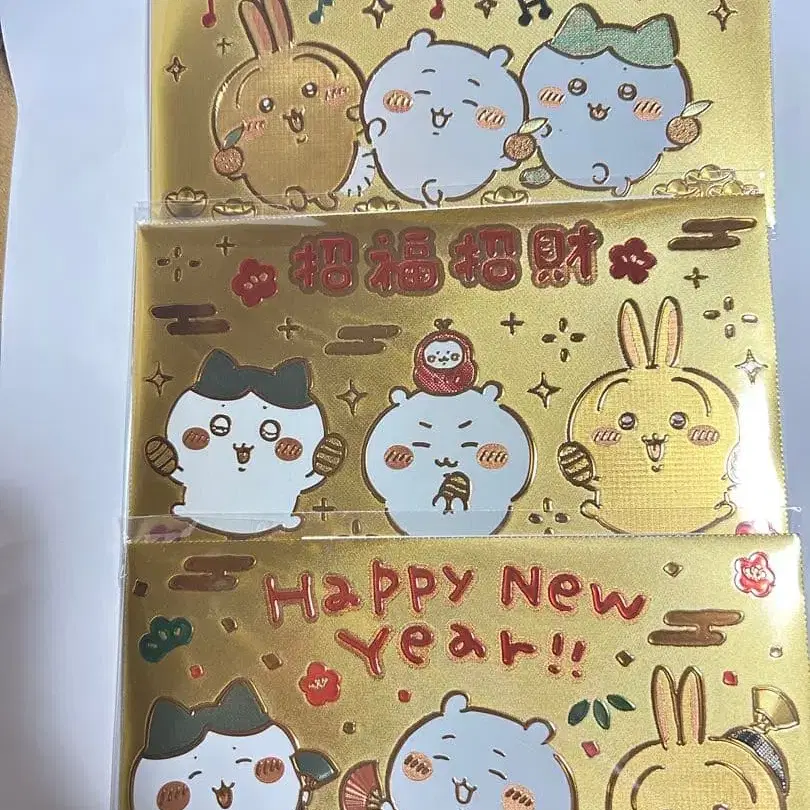 세뱃돈 봉투 3개 세트 골드 컬러 치이카와 (먼작귀)