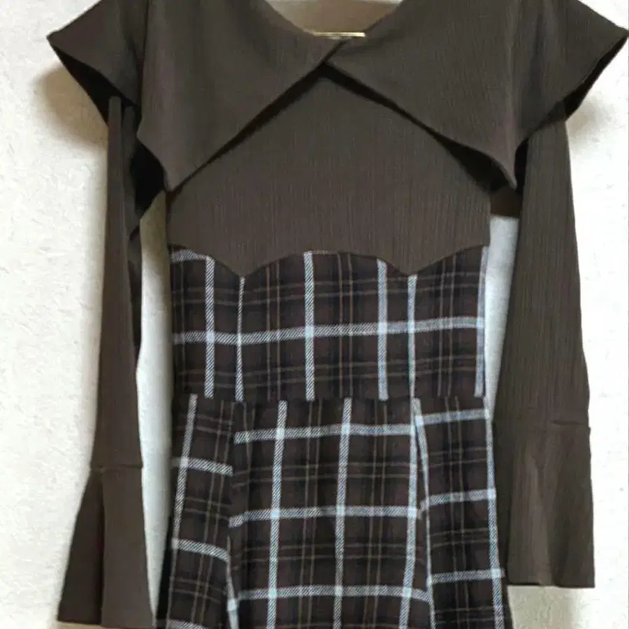 evelyn 시어 체크 코르셋 원피스