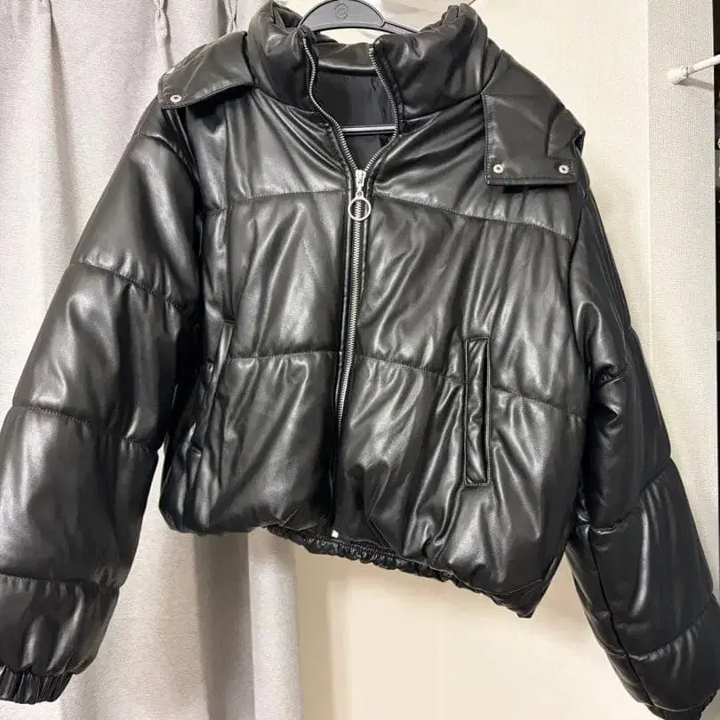 후드 부착 2way 블랙 가죽 자켓