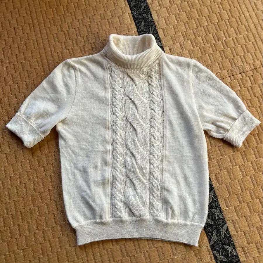 봐주셔서 감사합니다. MCM의 반팔 터틀넥 스웨터입니다. 사이즈 표기는 40 사이즈 실측치수는 어깨 너비 35cm 가슴 너비 43cm 기장 48cm 정도입니다. 울 50% 아크릴 50% 일본제 특별한 데미지는 없습니다. 클리닝 완료입니다.