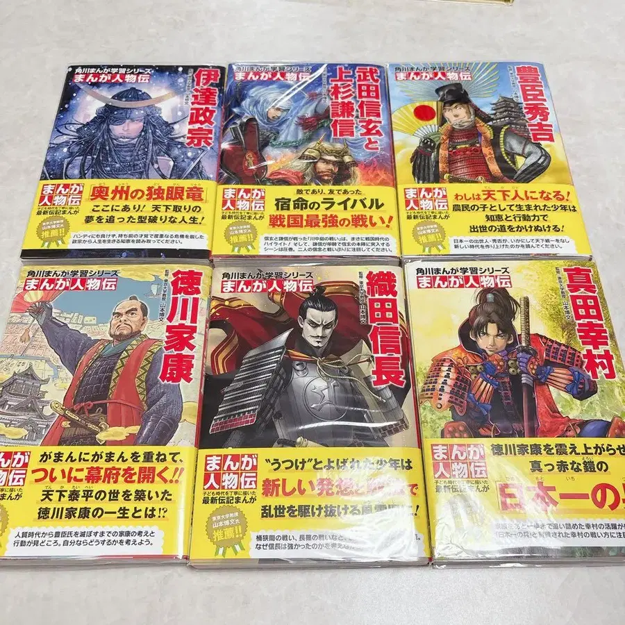 역사 속 위인들을 그린 만화 시리즈. 새 상품으로 구매 후 커버를 씌웠습니다. 아이가 읽었기 때문에 가끔 얼룩이 있습니다. 전반적으로 새 상품급입니다. - 시리즈명: 만화 인물전 - 저자: 다케다 신겐과 우에스기 겐신 - 저자: 다테 마사무네 - 저자: 도요토미 히데요시 - 저자: 도쿠가와 이에야스 - 저자: 오다 노부나가 - 저자: 사나다 유키무라 방문해 주셔서 감사합니다.