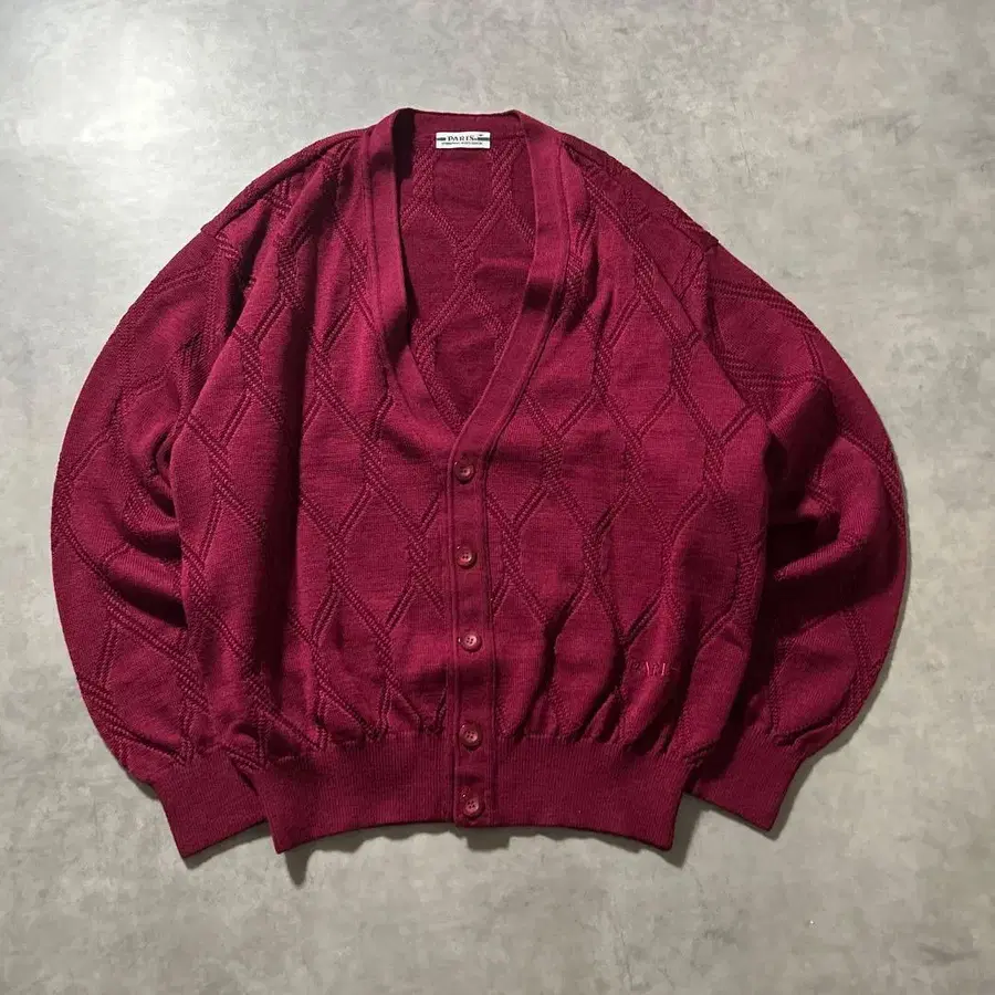빈티지 케이블 와인 레드 니트 레트로 원톤 가디건