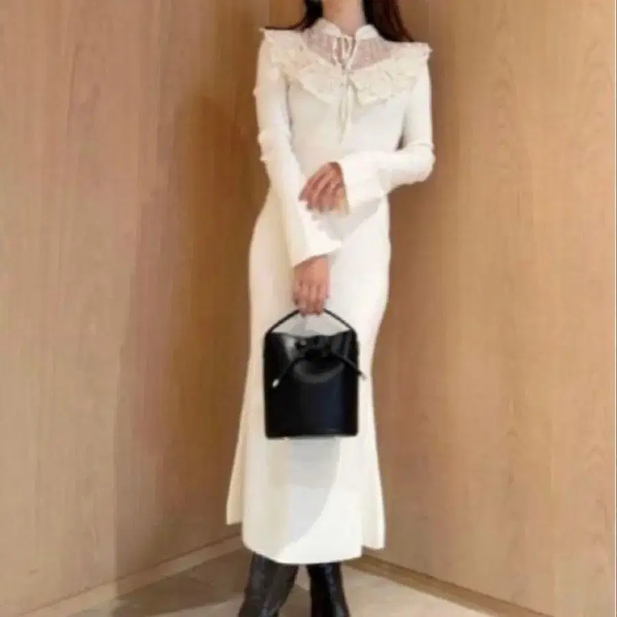 SNIDEL 스나이델 자수 레이스 원피스 벨 슬리브 머메이드 타이트 스커트 핏&플레어 아름다운 실루엣 리브 니트 원피스 리본 시어 울 양모